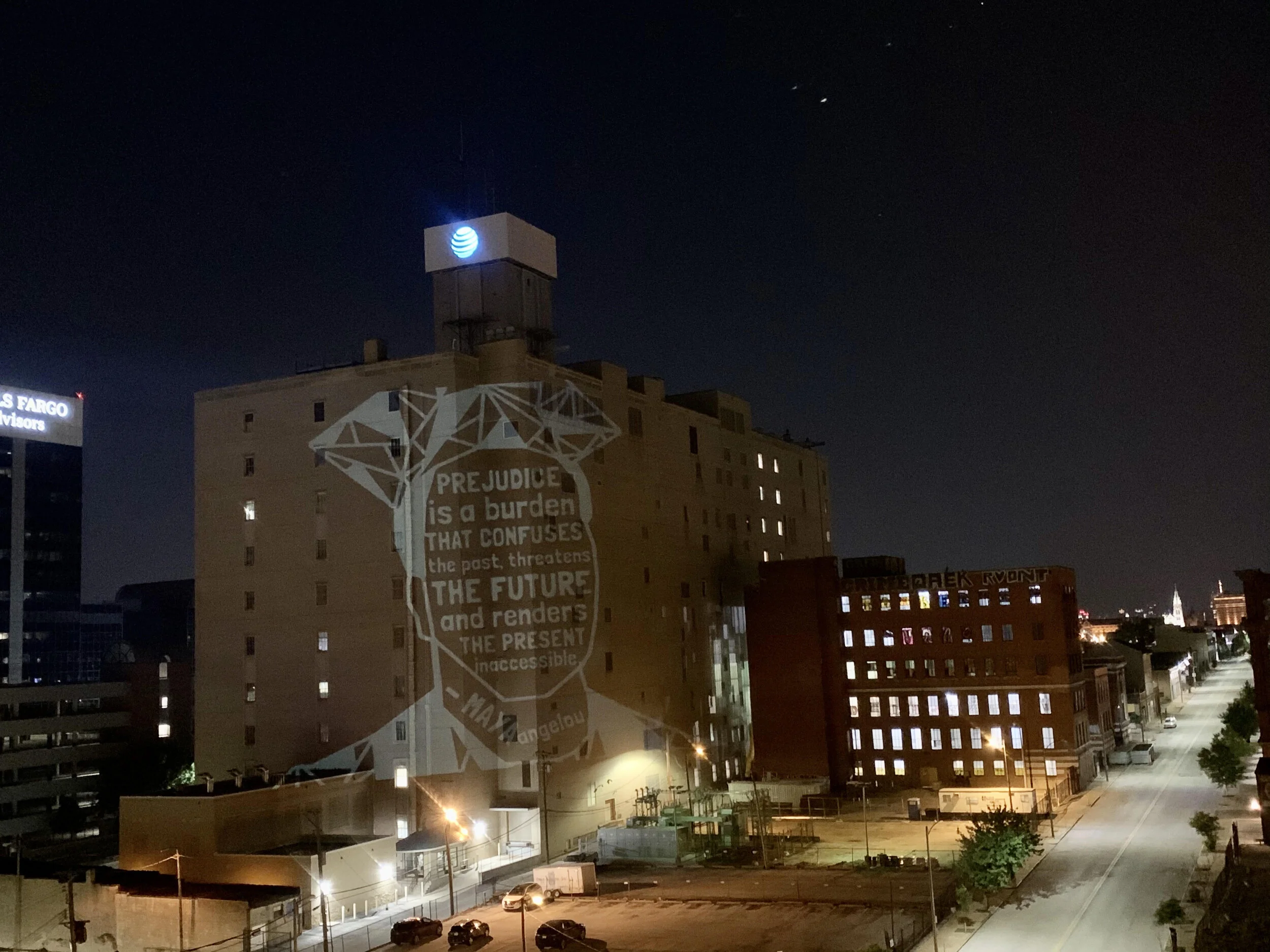 The #BLM prints were projected onto buildings in St. Louis during protests.